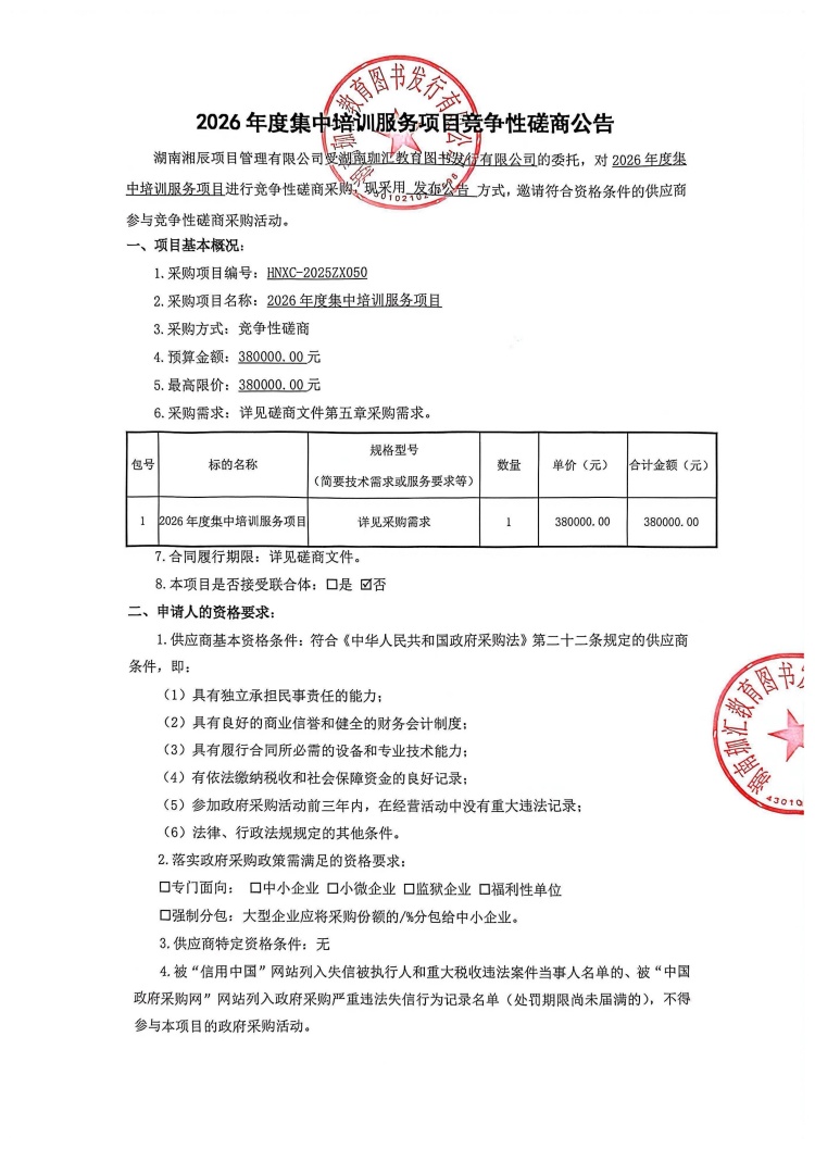 2026年度集中培训服务项目竞争性磋商公告
